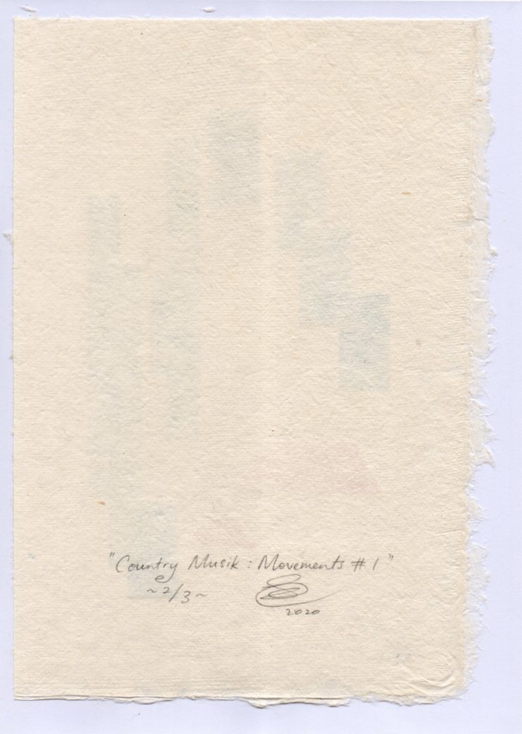 This year, during Covid lockdown, I made a series of prints that played with the original composition in 20 different configurations. This series is called ‘Country Musik: Movements #1 – 20’. There are 3 editions for each configuration. Edition 1 is kept intact as a set. Edition 2 is for sale individually here on my website. Edition 3 was given to friends in exchange for writing a personal ‘letter to what we want’. These letters are being serialized on my blog.